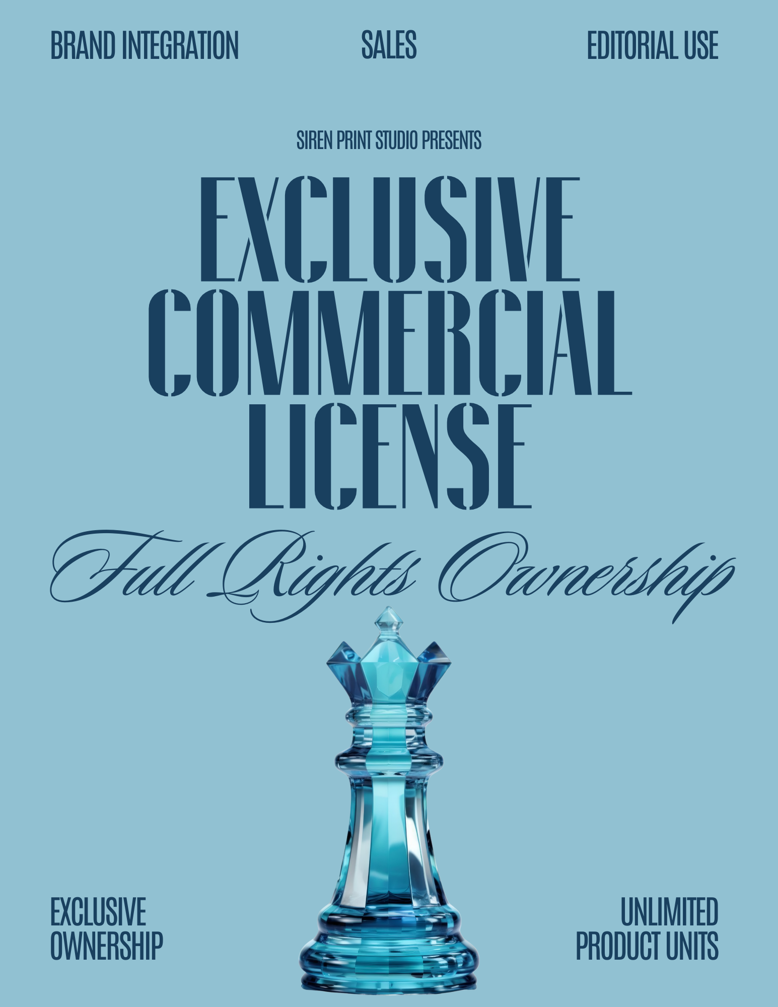 Secure full exclusive rights to a Siren Print Studio artwork, granting you complete commercial control and sole authorization to use the image. Once purchased, the artwork is removed from all sales channels and will not be licensed or sold again.
