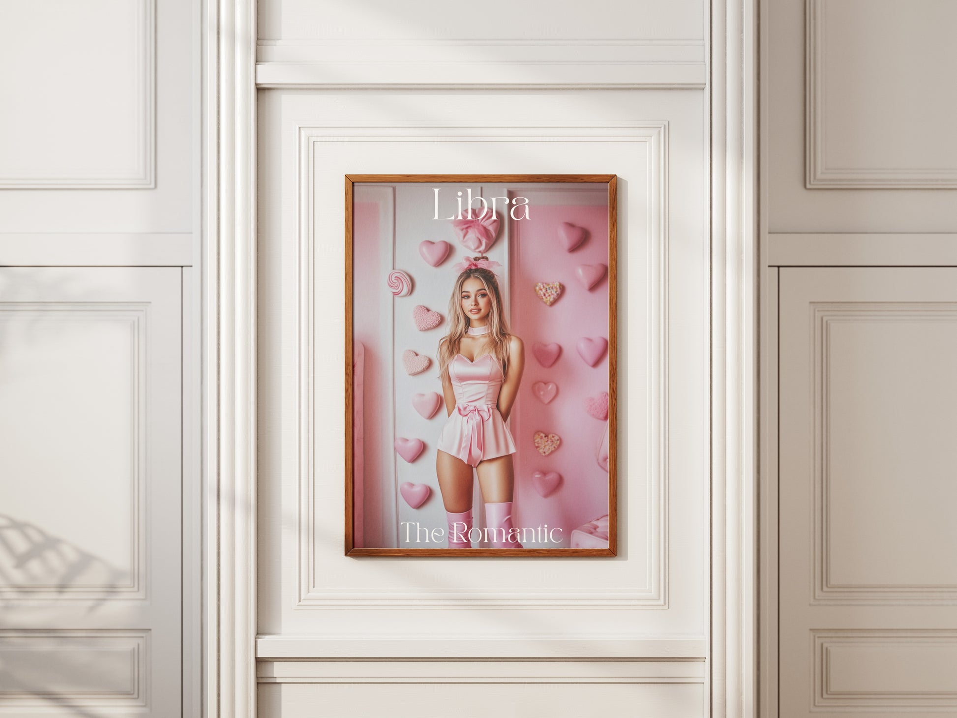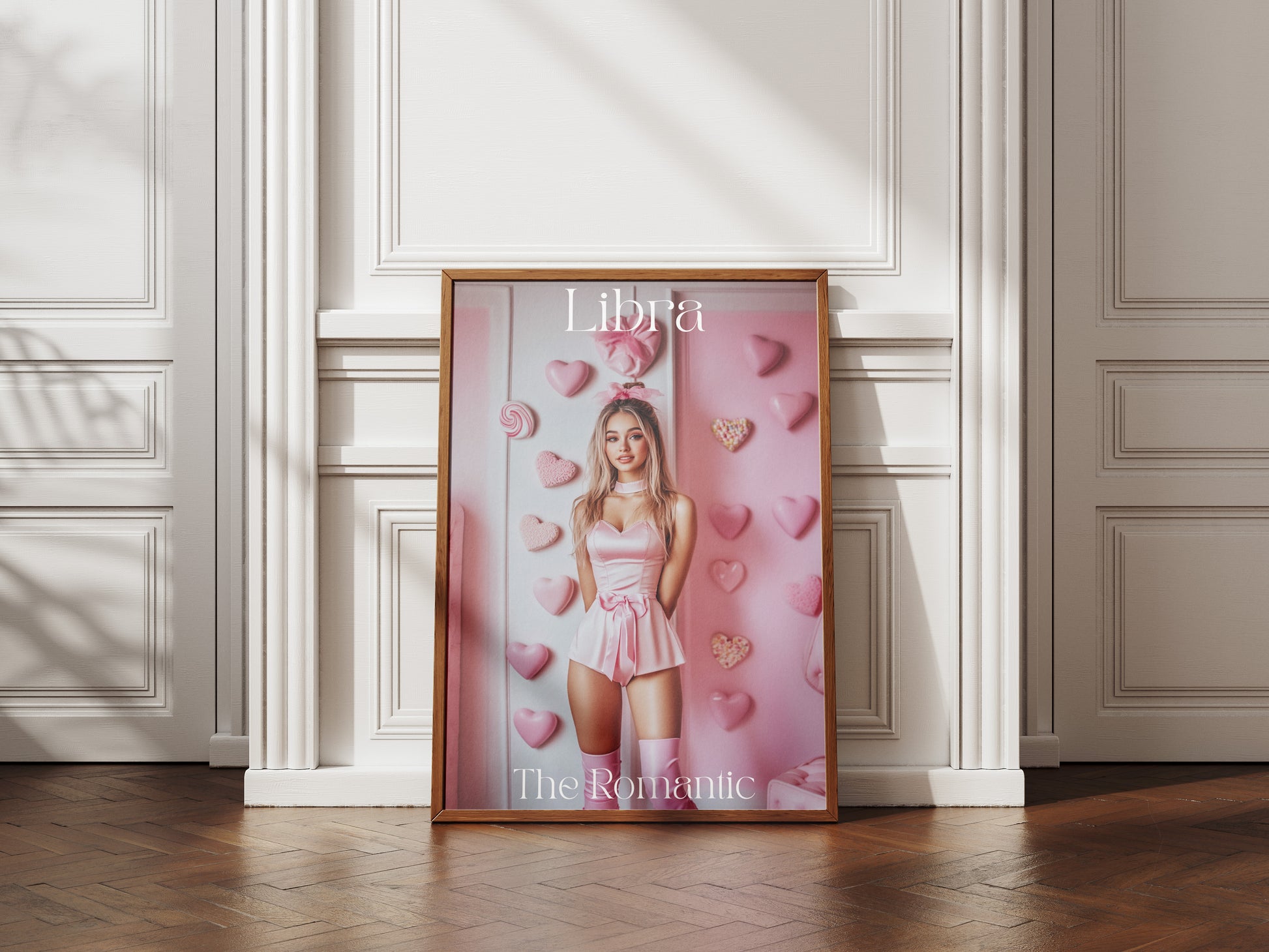 Libra Zodiac Sign Poster: Romantic pink aesthetic print featuring the Libra zodiac sign styled in dreamy candy-inspired decor. This digital download is perfect for astrology lovers, Libra birthdays, or anyone who adores soft feminine art with a playful edge. Whether you're decorating your bedroom or searching for the perfect gift for a Libra woman, this art print adds charm and cosmic personality to any space.Β Your purchase includes high-resolution files ready to print, making it easy and affordable to upgrade your decor instantly.