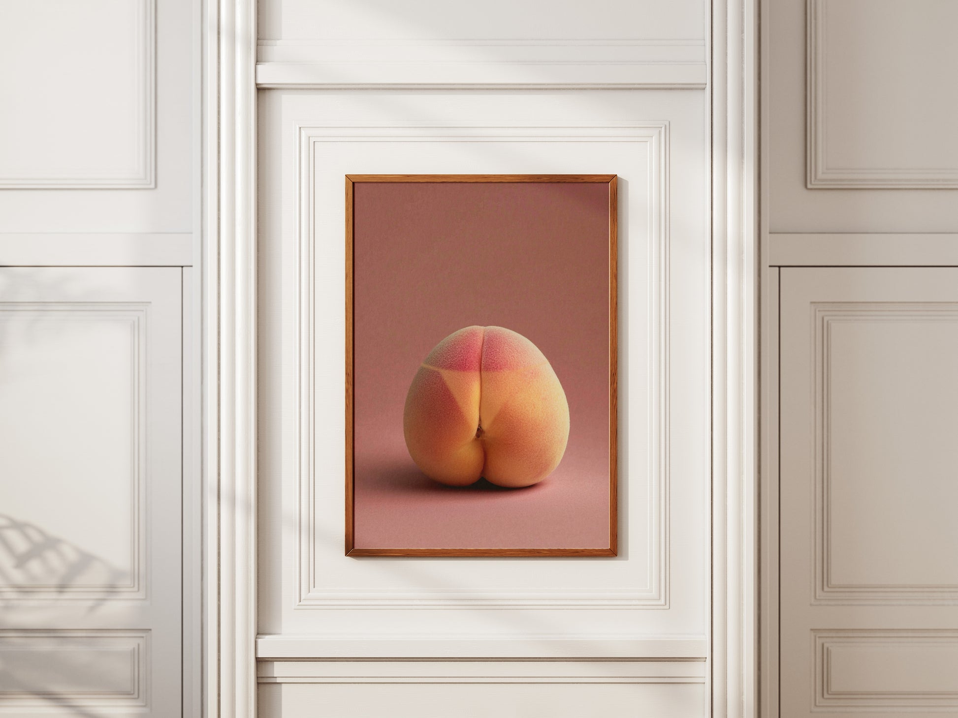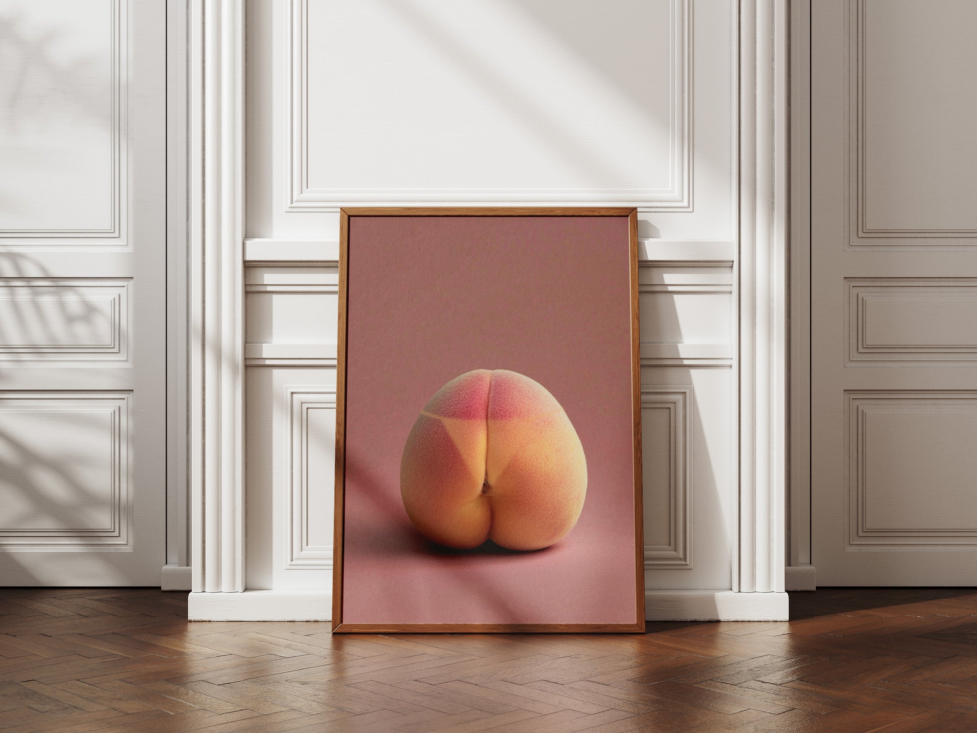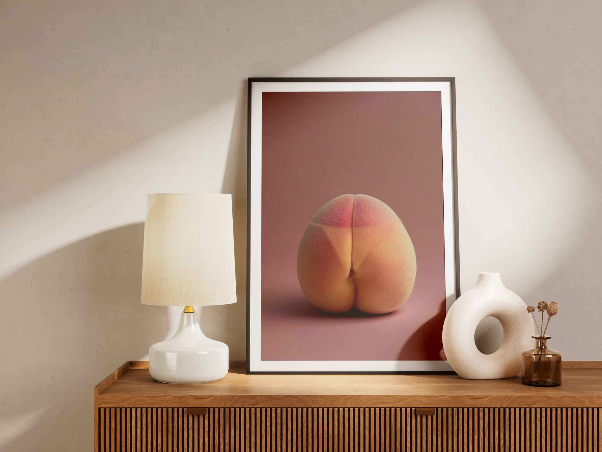Peach Tan Poster: A cheeky digital artwork featuring a juicy, sun-kissed peach that looks like it's been working on its tan. Bold, fun, and suggestive in just the right way, this minimalist fruit print is perfect for kitchens, bars, or anyone with a taste for playful, modern décor. Whether you're styling your own space or gifting someone who appreciates a little wink in their wall art, this piece adds instant character. It’s not just wall art; it’s a high-resolution digital download that instantly upgrades any space.