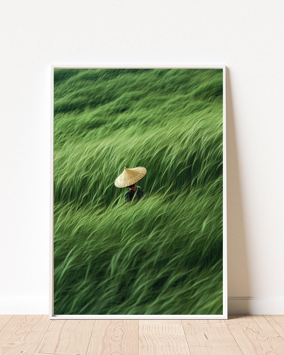 The Tall Grass Poster: Calming landscape illustration featuring a lone figure walking through tall, flowing green grass. This peaceful digital print adds a sense of stillness and natural movement to any space. Whether you’re decorating your home or searching for a thoughtful gift for a nature lover, this artwork brings tranquility and depth to your wall. It’s not just wall art; it’s a calming visual for anyone who loves peaceful landscapes.