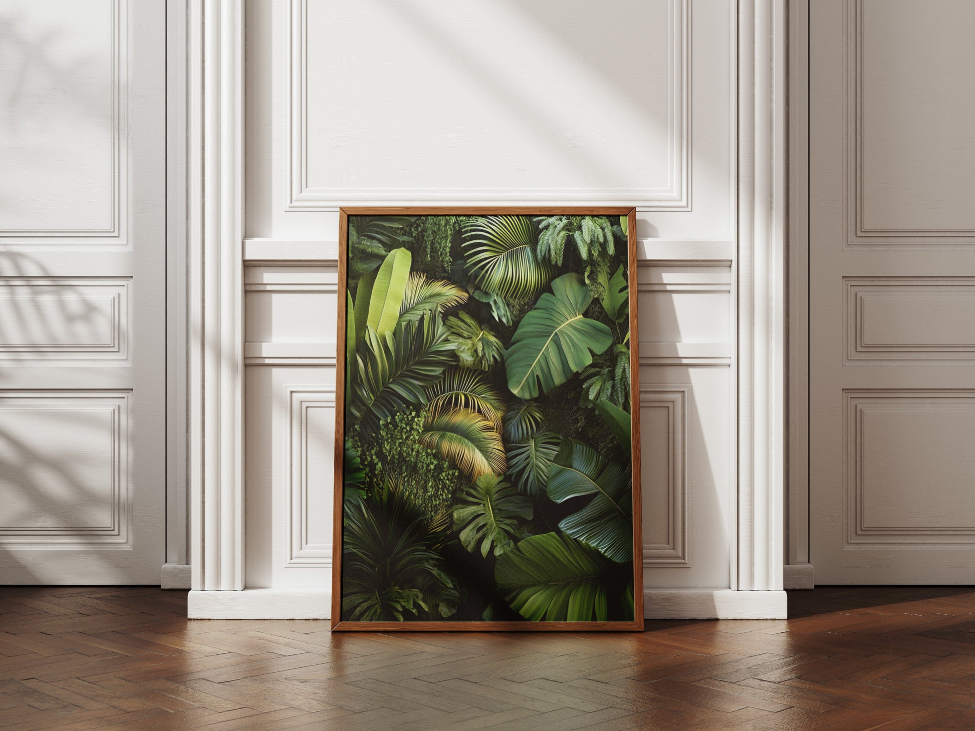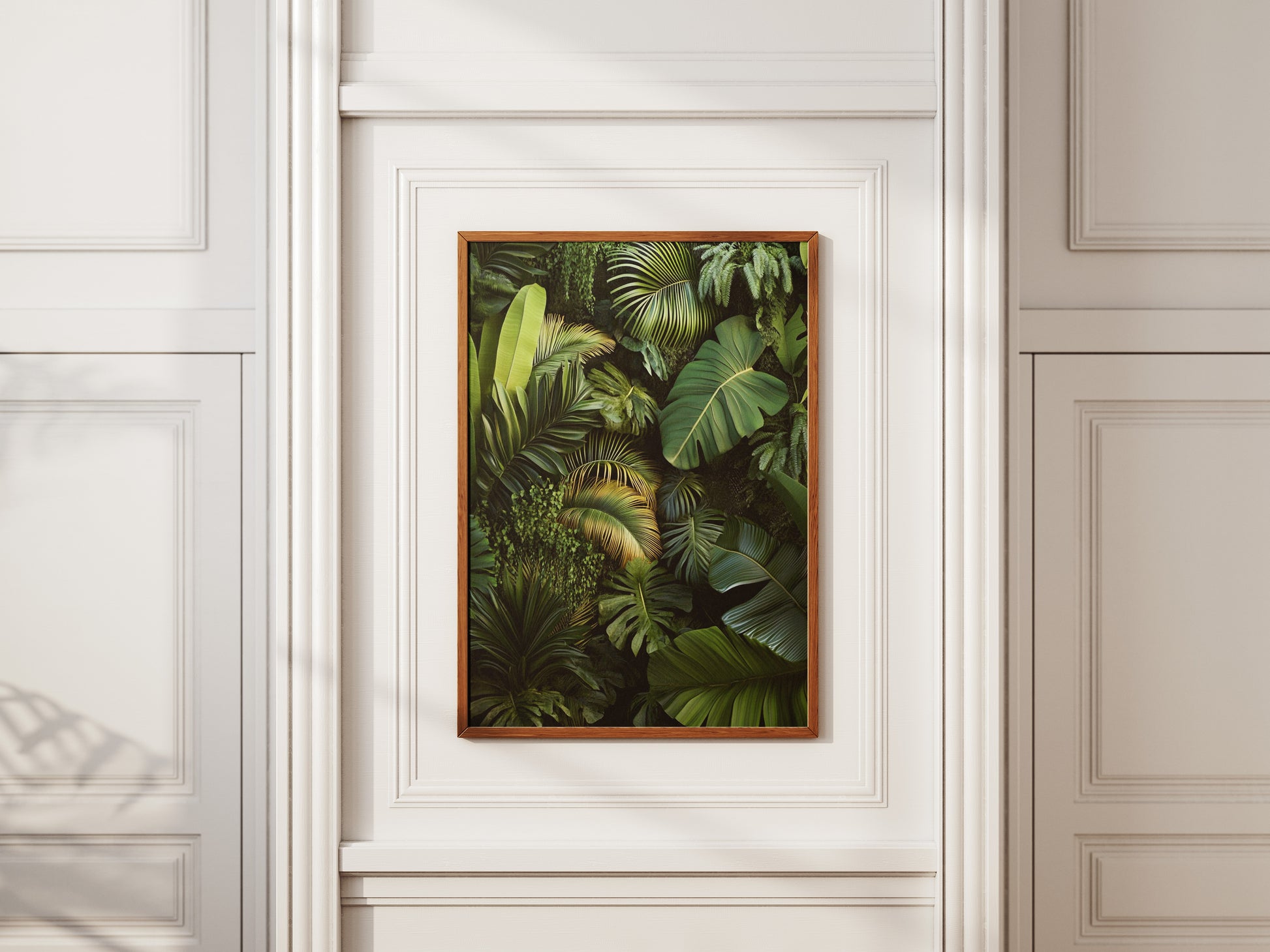 Tropical Foliage Poster: Bold and vibrant digital wall art featuring layered green tropical leaves in rich detail. This downloadable print brings the beauty of nature indoors—perfect for adding a modern, botanical touch to your living room, bedroom, home office, or entryway. Whether you're updating your gallery wall or gifting a plant lover, this artwork brings life and energy into any space. It's more than décor—it’s a simple way to create your own lush, calming retreat at home.