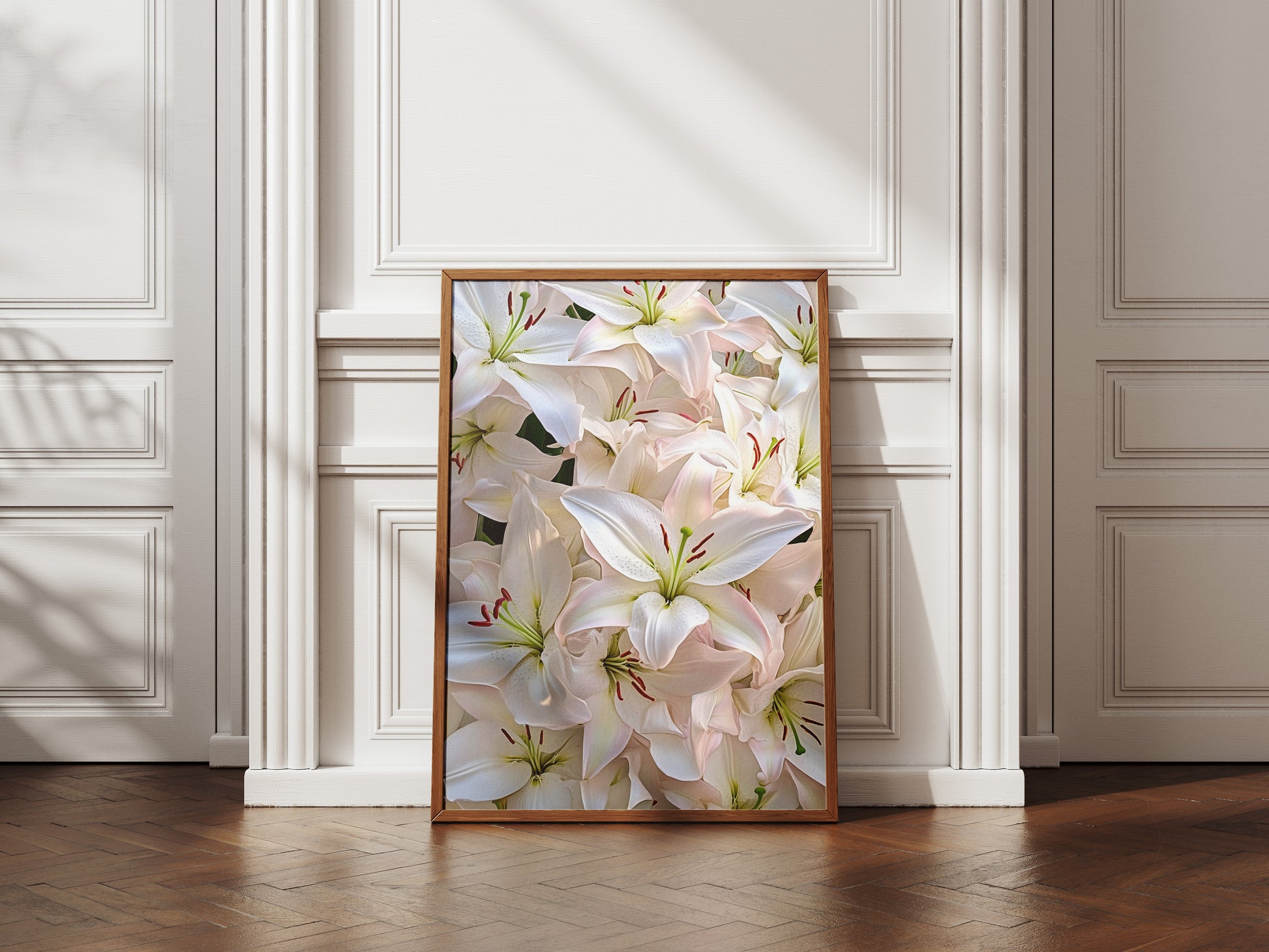 White Lily Poster: Soft and elegant floral illustration featuring a bloom of white lilies in full display. The gentle pink undertones and delicate petals create a peaceful atmosphere, making it perfect for modern, feminine spaces. Whether you’re redecorating your bedroom, adding images to a gallery wall, or searching for a thoughtful gift for a flower lover, this digital print brings botanical beauty to any setting. It’s not just art; it’s a serene escape into nature’s quiet luxury—one download away.
